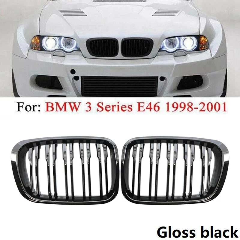 Глянцевая черная передняя решетка радиатора с двойной линией, спортивный гриль для BMW E46 3-Series 4 Door 1998-2001 51138208489 51138208490