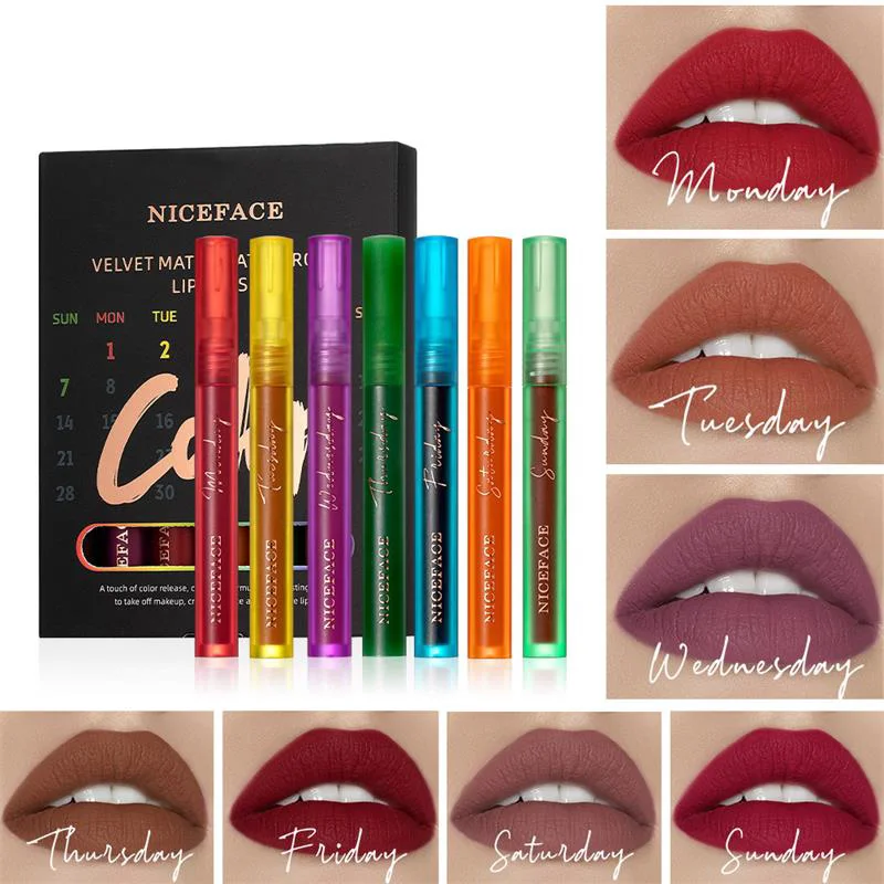 Глянцевый бархатный матовый блеск для губ, 7 шт./компл., натуральный стойкий антипригарный блеск для губ, легко носить, сексуальный Макияж дл...