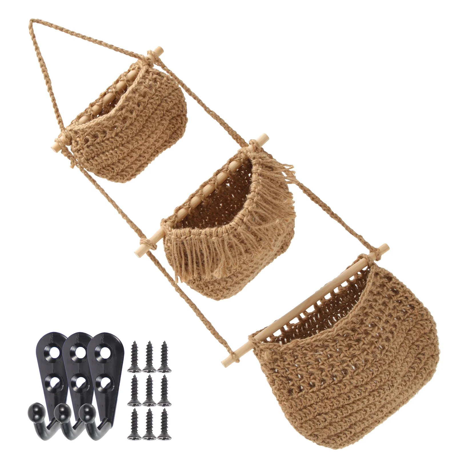 Basket Hanging Fruit Wall Tier Macrame Woven Baskets Hammockorganizer Vegetable Storage Rope Hanger Planter Door Kitchen Over