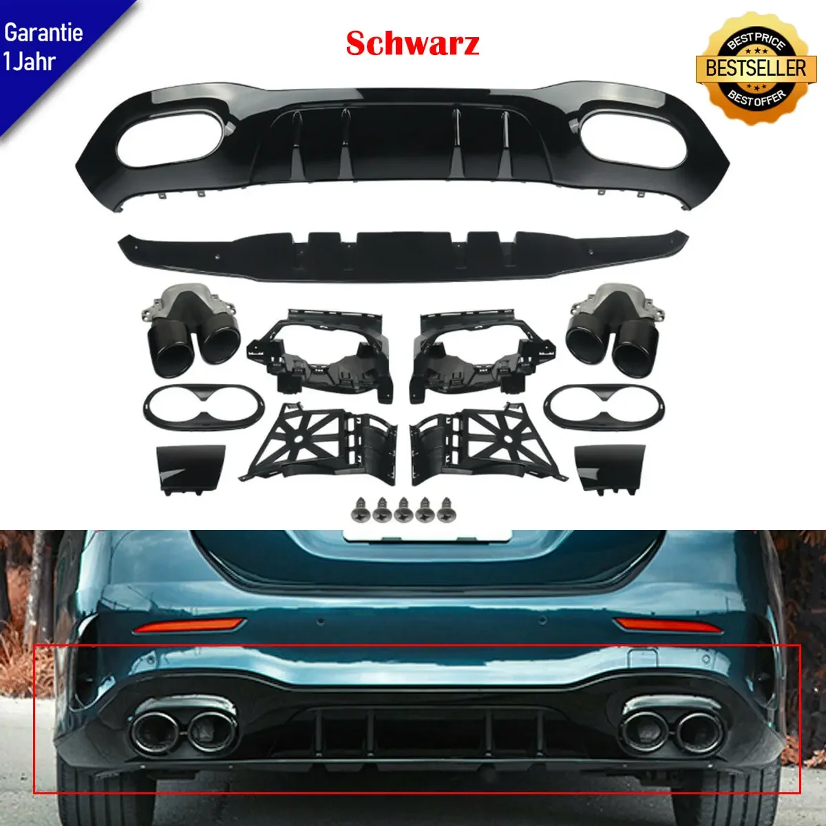 Глянцевый черный задний диффузор MagicKit для MERCEDES W177 A CLASS A45 + насадки на выхлопные трубы 2019 +
