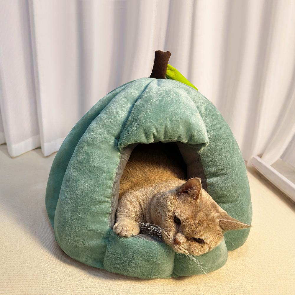 Гнездо для кошек зимой, теплое закрытое гнездо из тыквы, кровать для кошек, будка для домашних животных, домик для кошек в осенне-зимнем стиле для сна кошек зимой S size -40 * 40cm