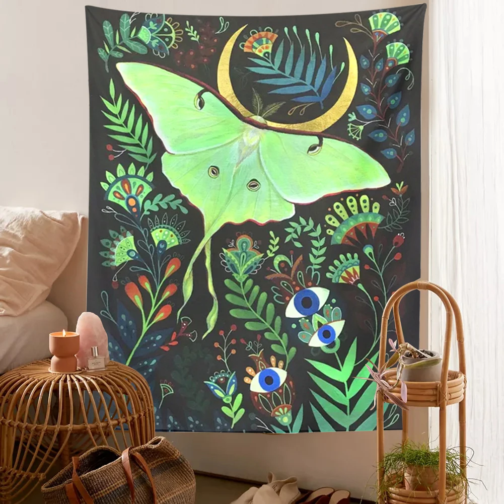 Гобелен в стиле хиппи, настенный гобелен с Луной, украшение для комнат в стиле «хиппи», богемный цветочный декор для комнат