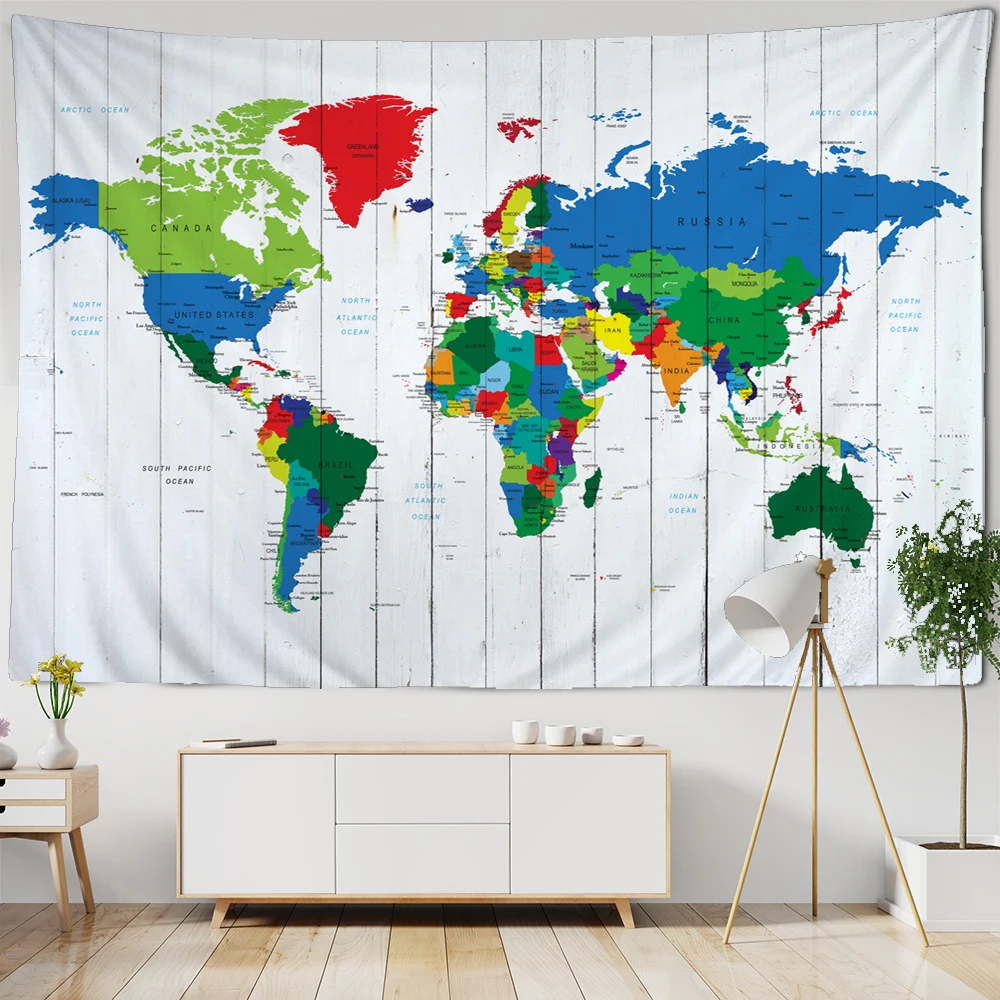 Гобелен с картой мира, ткань с картой высокого разрешения, подвесной Декор на стену, большая Акварельная карта, ткань для стен, фоновая ткань...