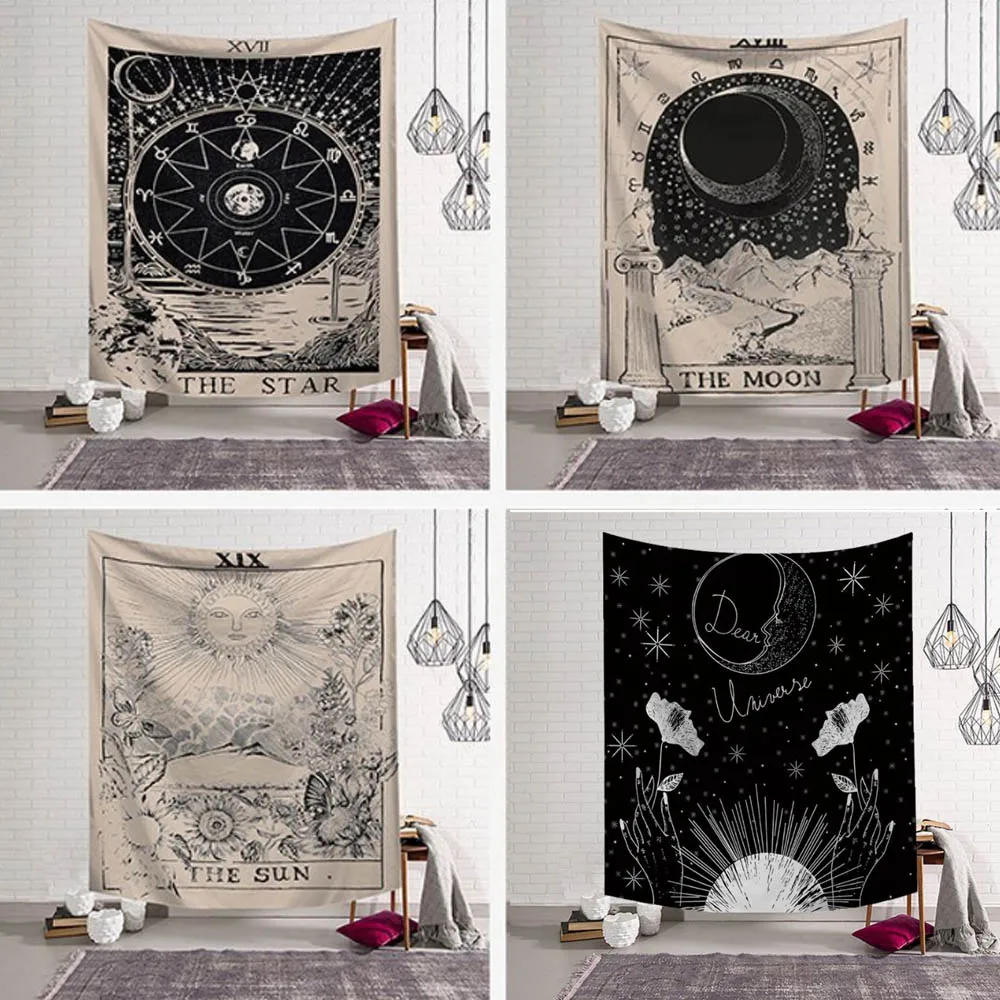 Гобелен с мандалой, таро, настенное украшение, хиппи, пляжный плед, ковер, солнце, луна, богемное домашнее искусство, Психоделическое украшен...