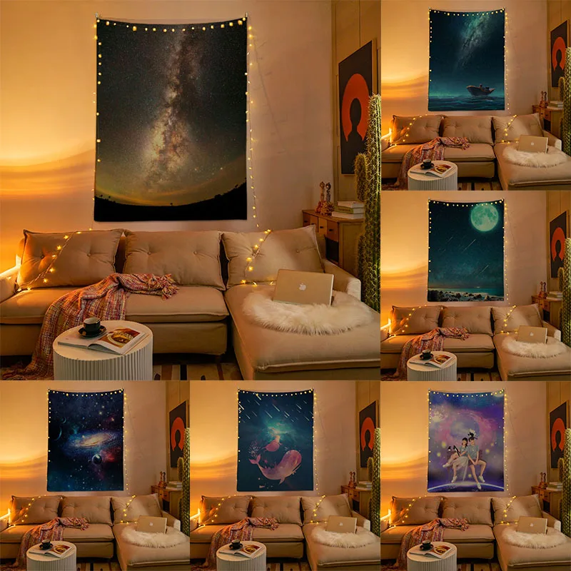 Гобелен, эстетический декор, ночное звездное небо, домашняя гостиная, подвесной фон из ткани