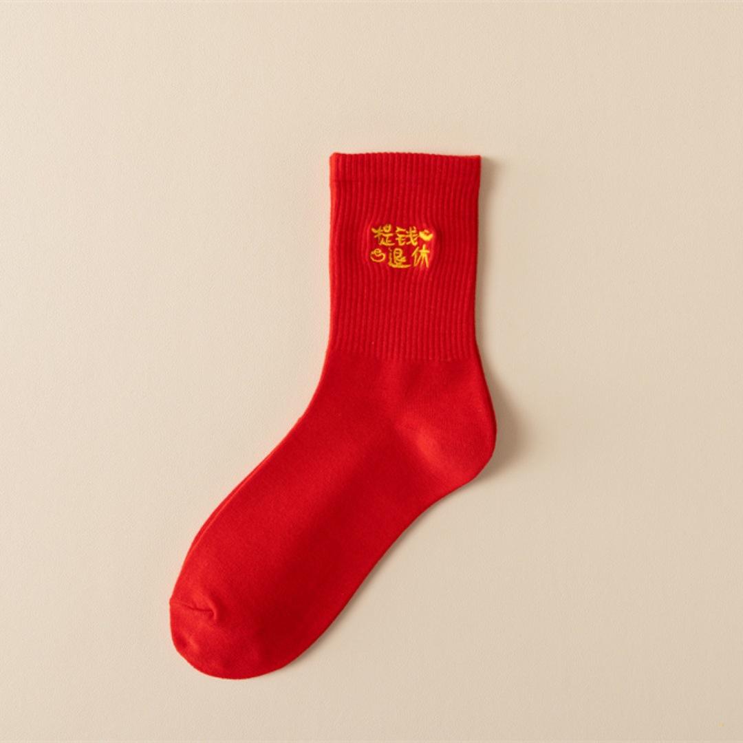 Год Змеи, день рождения, новый год, красные носки, женские, гребенной хлопок, Gaoluokou, милые, змеиные, удача, золотой шелк, вышитые, женские, средние, носки-трубы Size 36-42