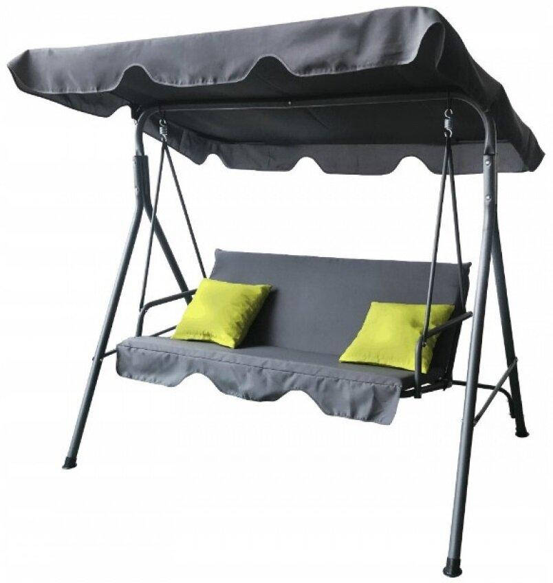 Садові гойдалки Bonro – це гарне поєднання міцного дизайну, темного забарвлення та зручності, що надасть Вашій ділянці особливого характеру. Естетичний вигляд виробу та використання високоякісних матеріалів підкреслює модні тенденції та надає Вашому місцю відпочинку ексклюзивність. Гойдалки Bonro кріпяться на товстих трубах зі сталі, які вкриті порошковою фарбою, що гарантує захист від зовнішніх пошкоджень на довгий час. Зібрати виріб дуже просто, але готова конструкція достатньо стійка, що Ви можете не хвилюватися за свою безпеку та безпеку своїх близьких. Наша гойдалка має ще декілька особливостей: Тверда сталева конструкція з порошковим покриттям Може витримувати навантаження до 200 кг. Козирок з регулюванням кута нахилу Специфікація: Колір рами і обшивки - графіт Колір подушки - зелений Регульований козирок Дві подушки Розміри стійки: Ширина: 170 см Глибина: 110 см Висота: 153 см Розміри коробки / вага: 138 х 14 х 58 (см) / 19 кг З нами зручно і комфортно Для покупки зручної садової гойдалки Вам не треба докладати особливих зусиль. Просто зробіть замовлення на нашому сайті, виберіть для себе зручну форму розрахунку та доставки, та очікуйте прибуття. На даний товар ми надаємо гарантію 12 місяців, якщо у Вас з’являться запитання, або Ви потребуєте допомоги у виборі – наш менеджер з радістю піде Вам назустріч і максимально полегшить процес придбання.