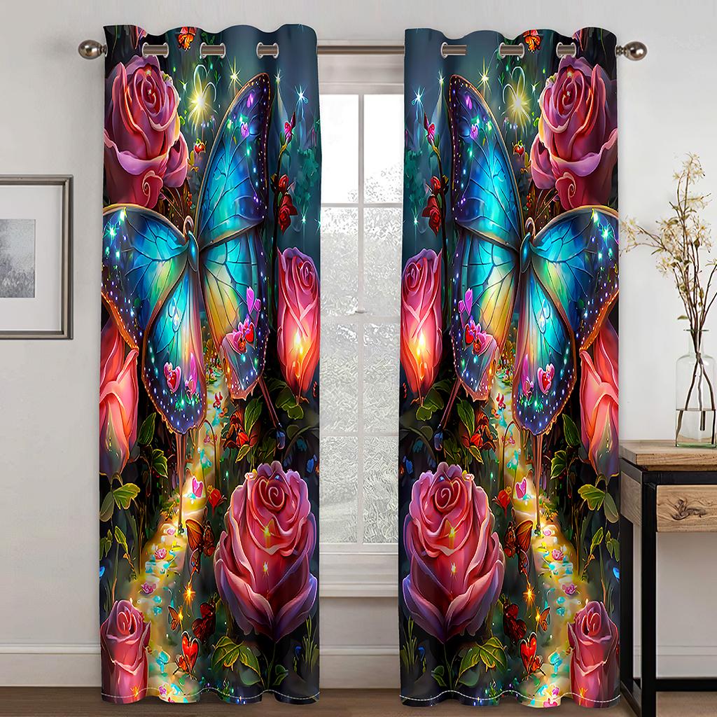 Голубая бабочка с золотым фоном, принт, шторы, 2 панели, современное искусство, яркие шторы с бабочками, гостиная, спальня, балкон, декор 50W130H(CM)X2PCS&HooK