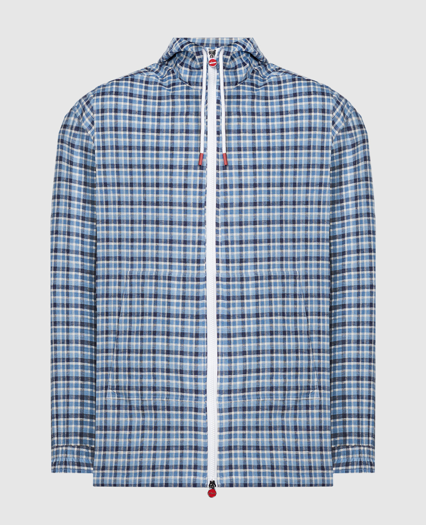 Голубая ветровка в клетку с льном, Голубой, Ветровки