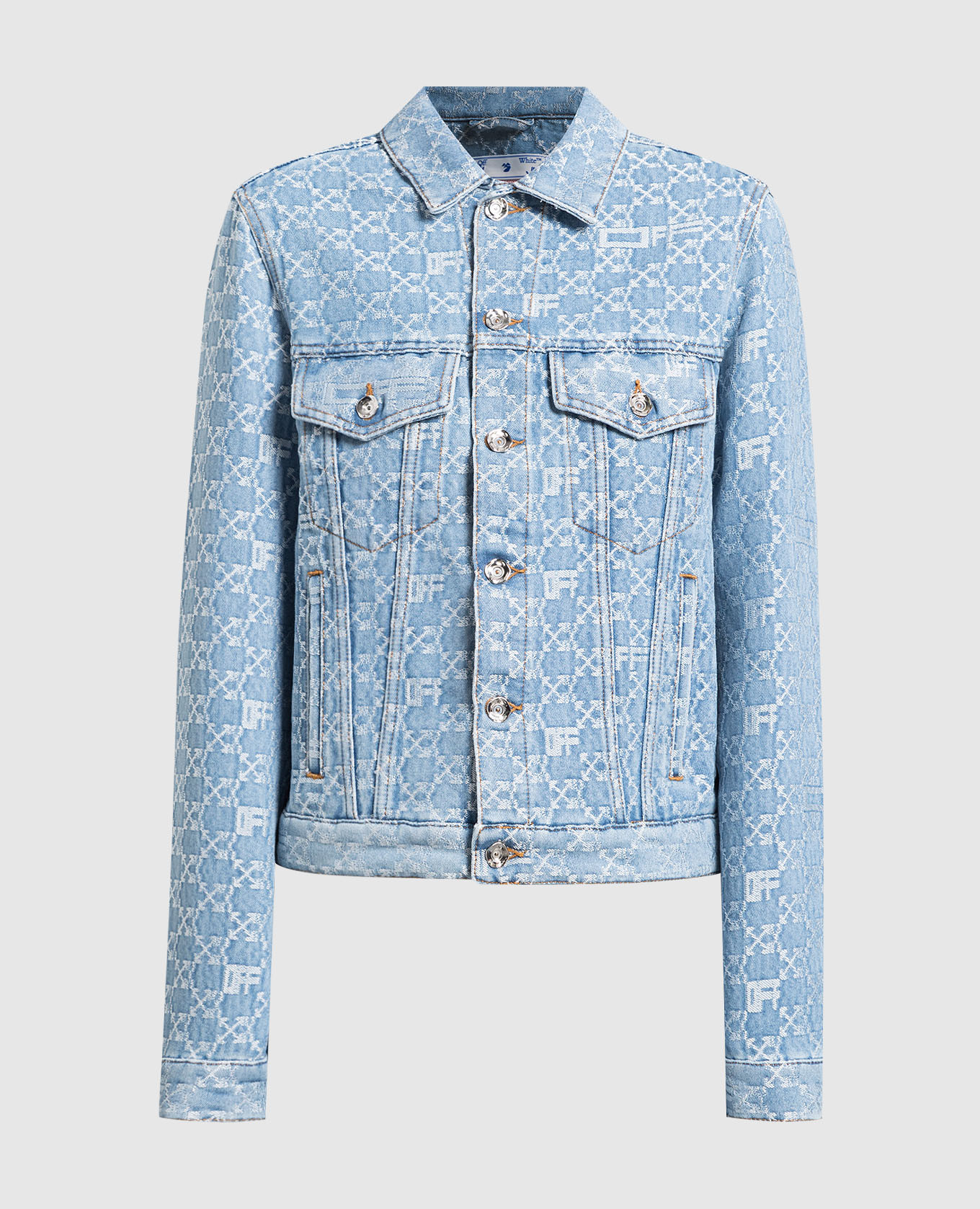 Голубая джинсовая куртка в логотип шаблон., Голубой, Джинсовые куртки