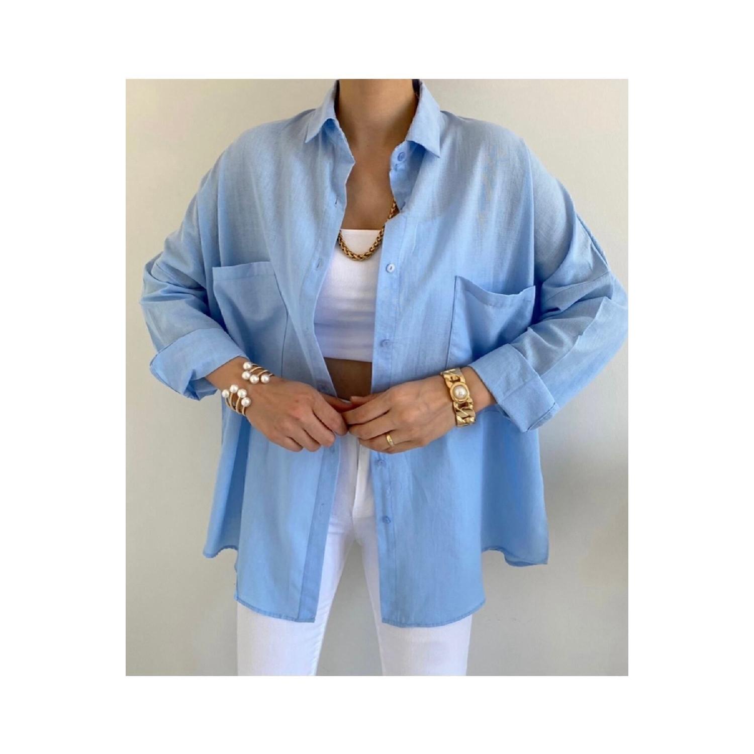 Голубая льняная рубашка оверсайз Standart чёрный