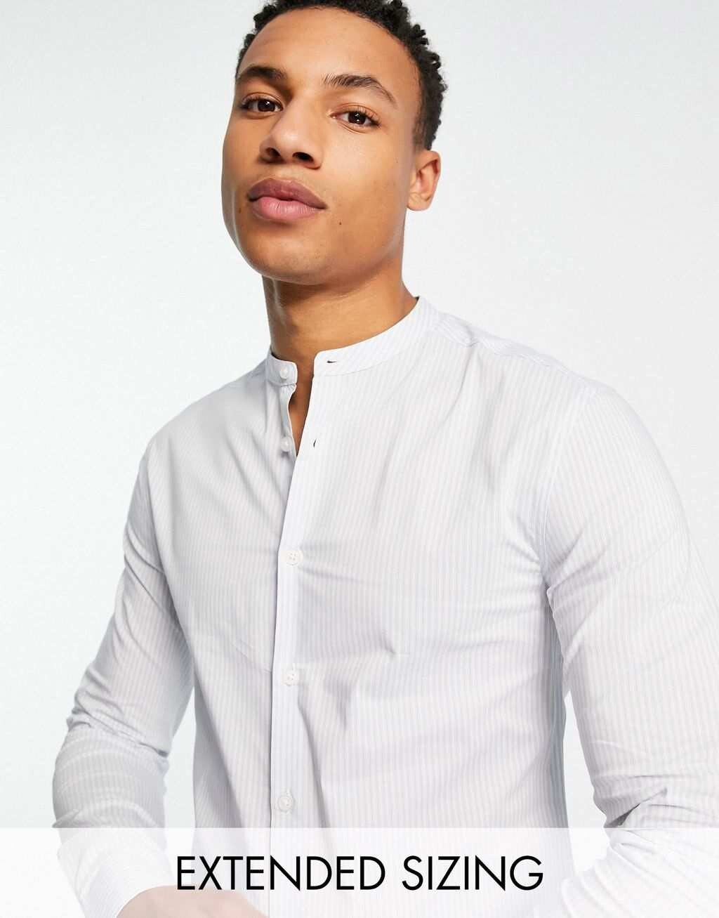 Голубая рубашка скинни в полоску с дедушкиным воротником ASOS DESIGN
