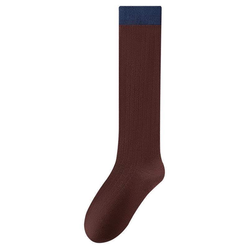 Гольфы до икры, Женские носки, Весенне-осенние ретро цветные гольфы до колена, Персонализированные носки-гольфы средней длины 1 pair коричневый/темно-синий