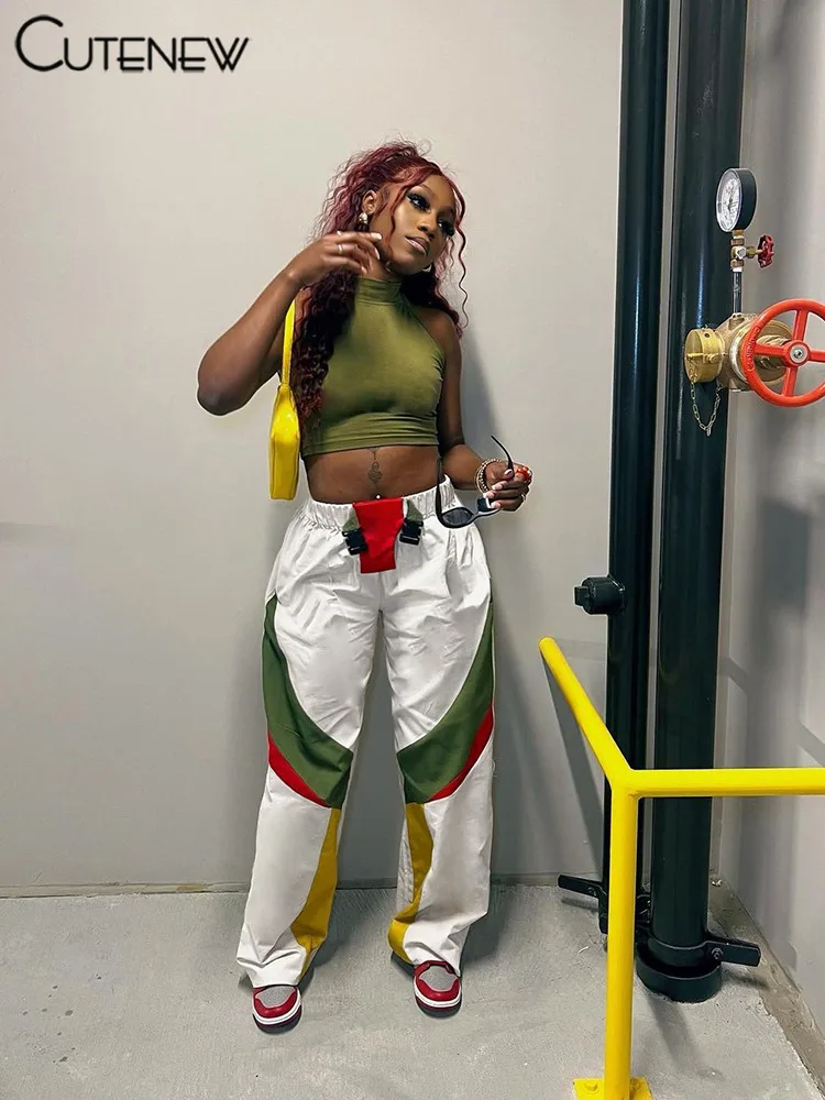 Cutenew Лоскутные женские брюки 2023 горячие сексуальные леггинсы с высокой талией на шнуровке спортивные свободные облегающие брюки для коррекции фигуры