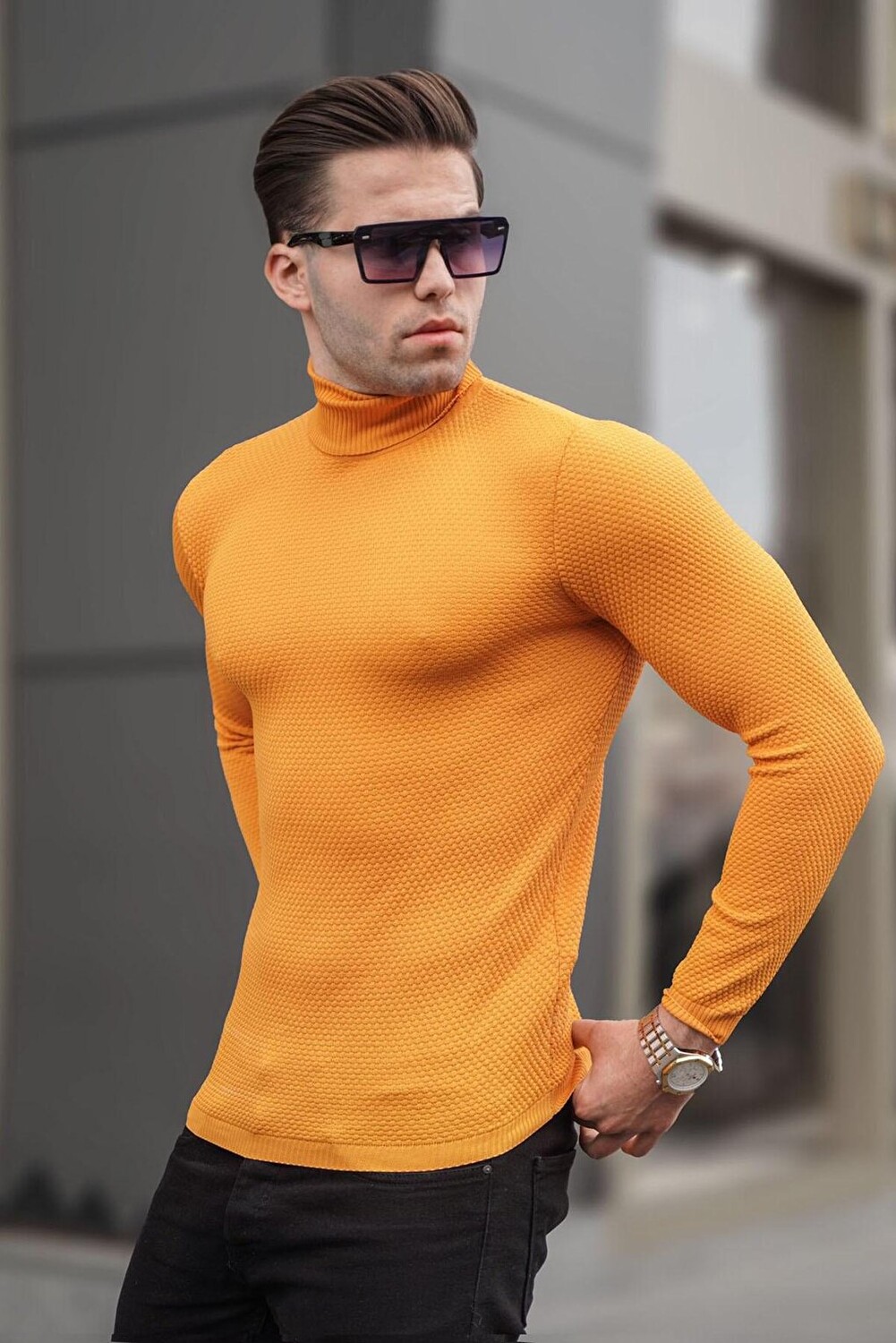 Горчичный мужской трикотажный свитер Turtleneck 6306 MADMEXT, Желтый, Горчичный мужской трикотажный свитер Turtleneck 6306 MADMEXT