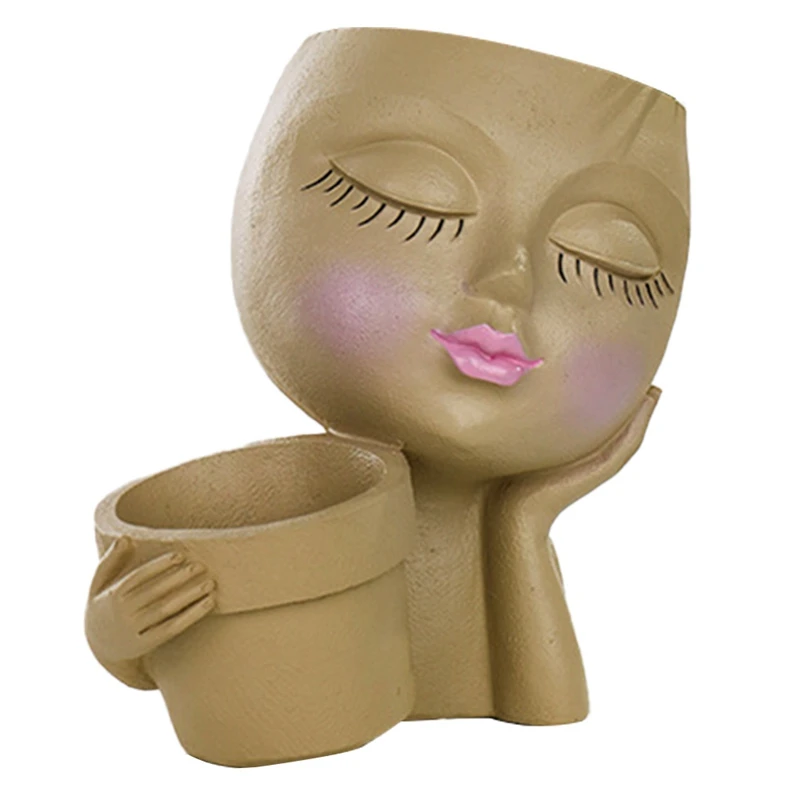 Горшок для растений с лицевой поверхностью, горшок для комнатных и уличных растений, с полимерной головкой, милый Дамский горшок для растений с дренажным отверстием, 1 шт.