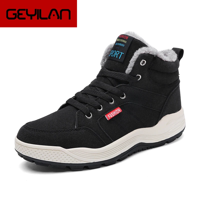 Leather Men Boots Winter with Fur 2019 Warm Snow Boots Men Winter Work Casual Shoes Sneakers High Top Rubber Ankle Boots 39-48