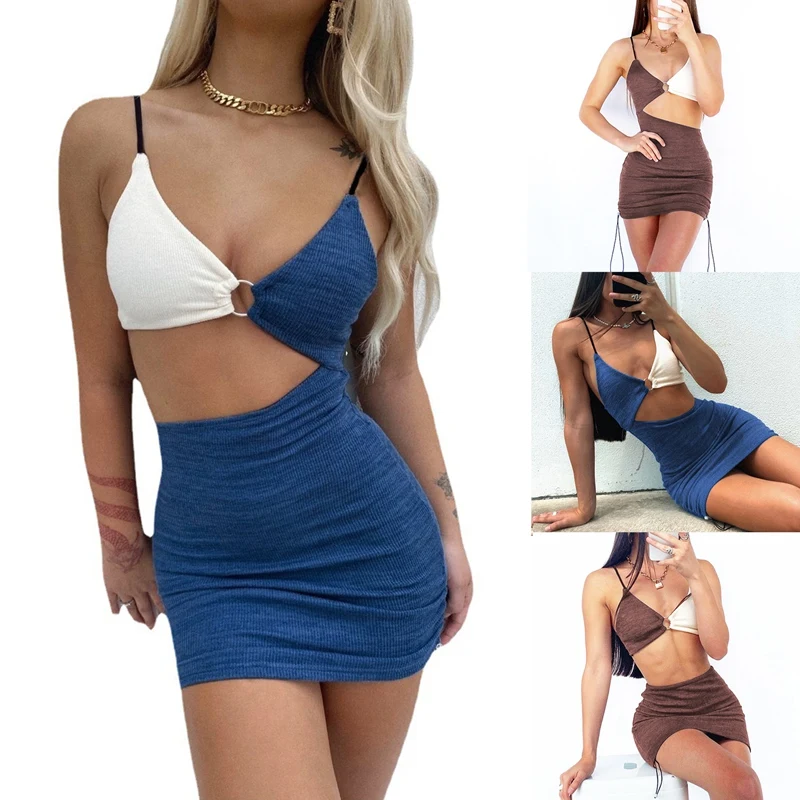 Горячая Распродажа Kf-пикантное мини-платье на бретельках со шнуровкой и рюшами с вырезом и открытой спиной для женщин Клубные вечерние плат...
