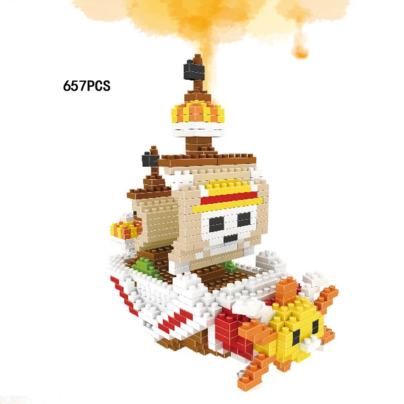 Горячая аниме одна деталь тысяча Солнечный nanoblock пиратский корабль micro diamond building block модель assemable кирпичи игрушечные лошадки коллекция