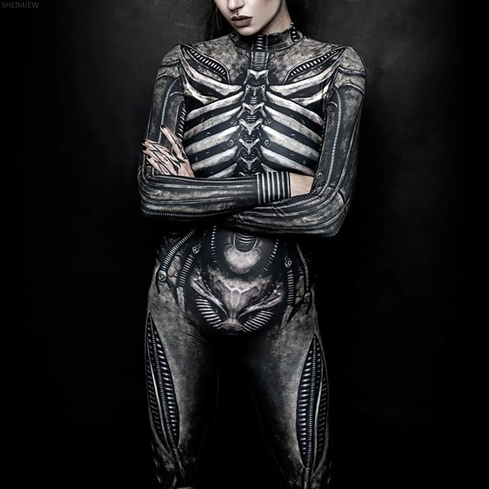 Women's Turtleneck Simulation 3D Printing Robot Zip Bodysuit Full Body Bodysuit Halloween Costume Juniors Body Suits
