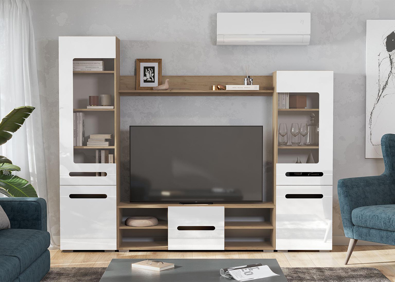 Гостиная МГС-6, дуб золотой/белый глянец