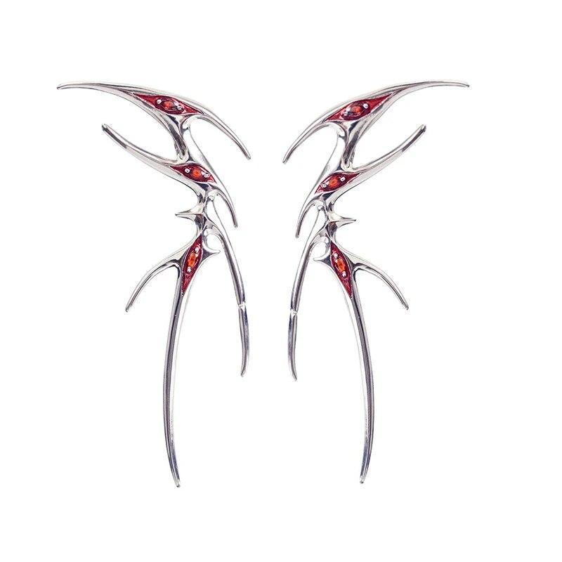 Готический панк-бабочка, зажим для ушей, женские модные красные стразы, серьги для косплея эльфа, вечерние ювелирные аксессуары, подарок