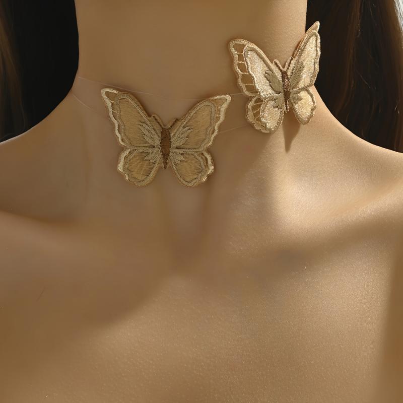 Готическое многослойное ожерелье для женщин, прозрачный тюль, воротник «летучая мышь», ручная работа, плетеная леска, алый дизайн бабочки, U-образная регулируемая пряжа, ювелирные изделия хаки