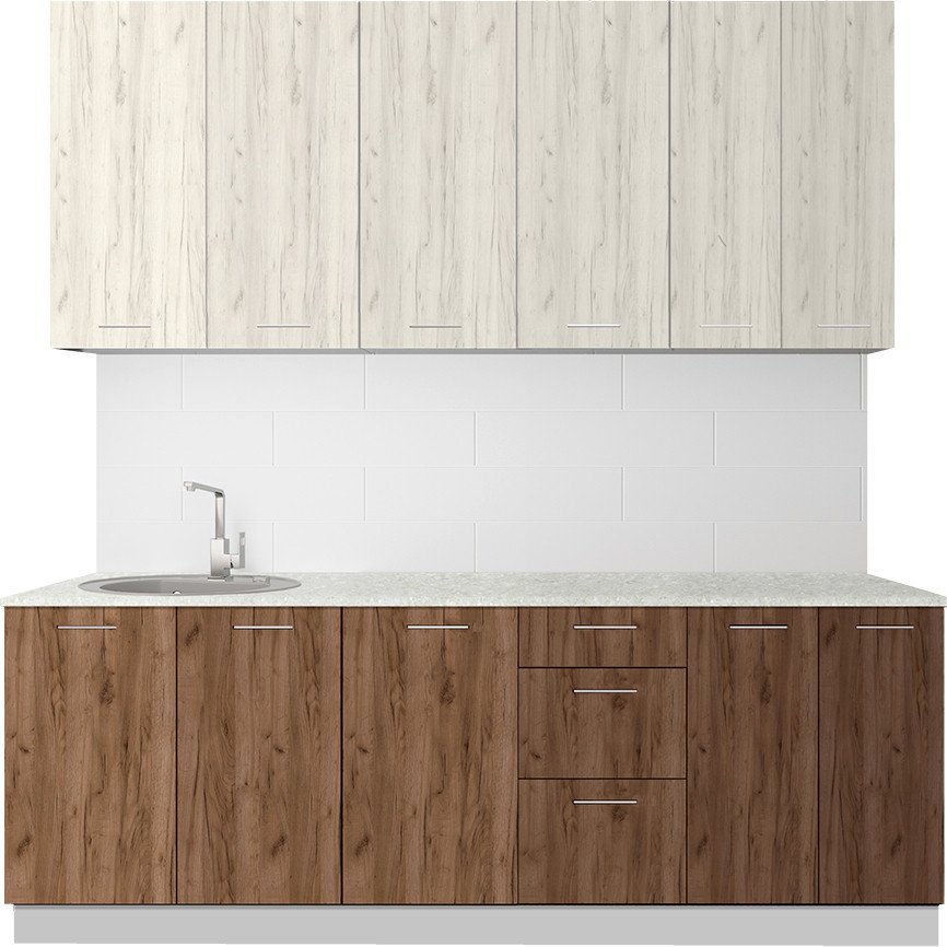 линейная, длина 220 см, ширина 60 см, каркас ЛДСП, фасад ЛДСП, установка мойки: накладная мойка, ширина шкафа под мойку 80 см