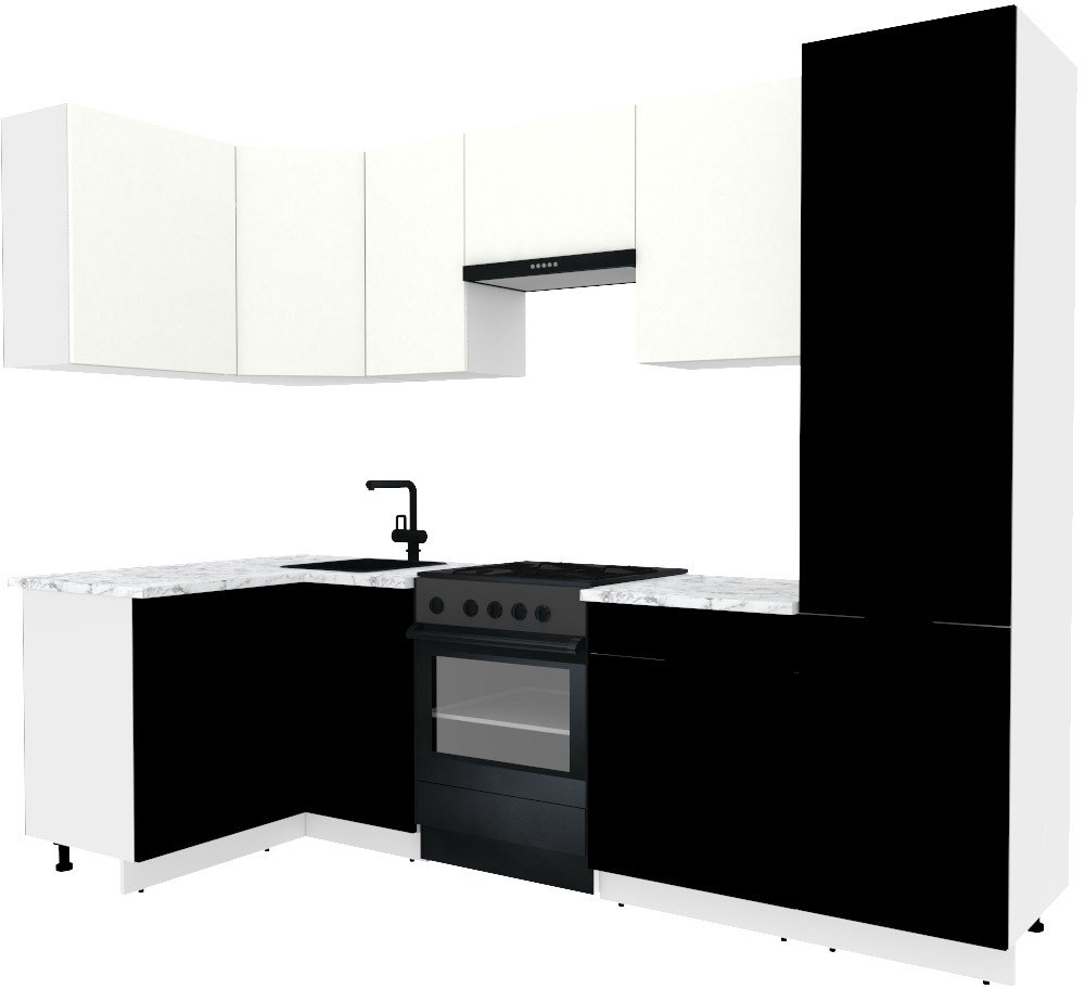 Готовая кухня ВерсоМебель Эко-1 1.2x2.6 левая (белый фасадный/черный/ст.мрамор итальянский)