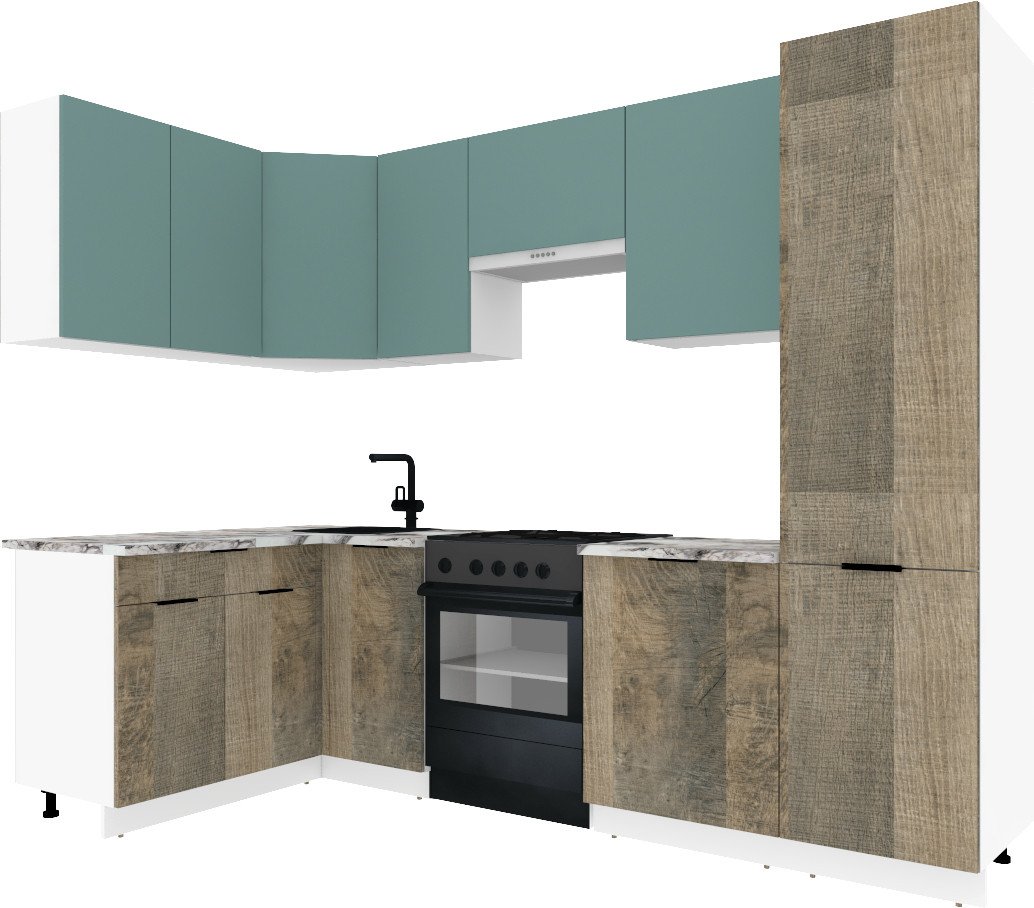 Готовая кухня ВерсоМебель Эко-1 1.4x2.6 левая (сумеречный голубой/дуб гранж песочный/ст.альберика)