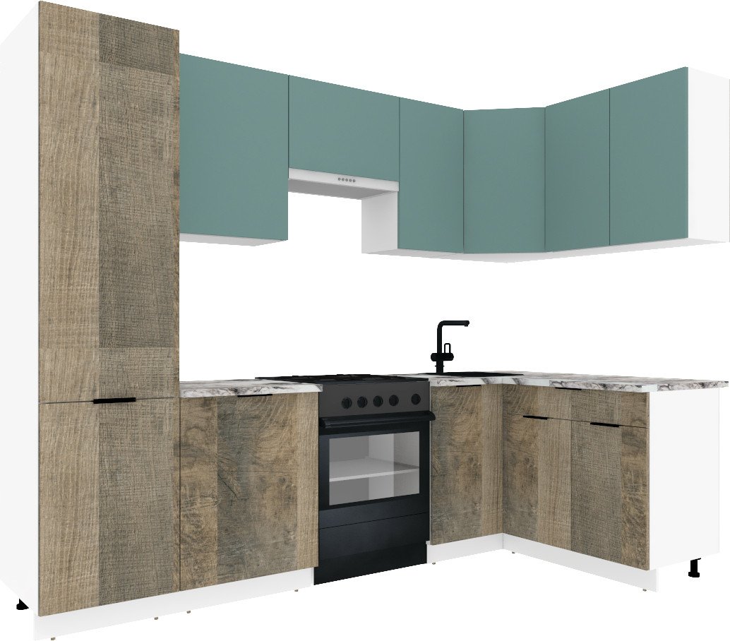 Готовая кухня ВерсоМебель Эко-1 1.4x2.6 правая (сумеречный голубой/дуб гранж песочный/ст.альберика)