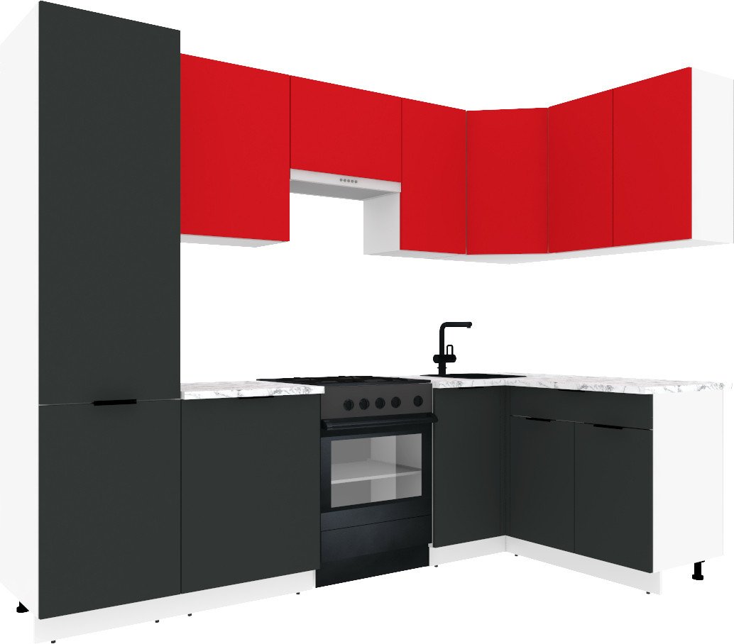 Готовая кухня ВерсоМебель Эко-2 1.4x2.7 правая (красный чили/антрацит/ст.мрамор итальянский)