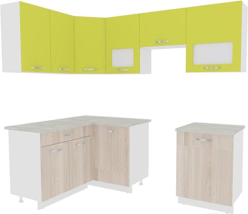 Готовая кухня ВерсоМебель Эко-5 1.4x2.2 левая (ясень шимо светлый/зеленый лайм)