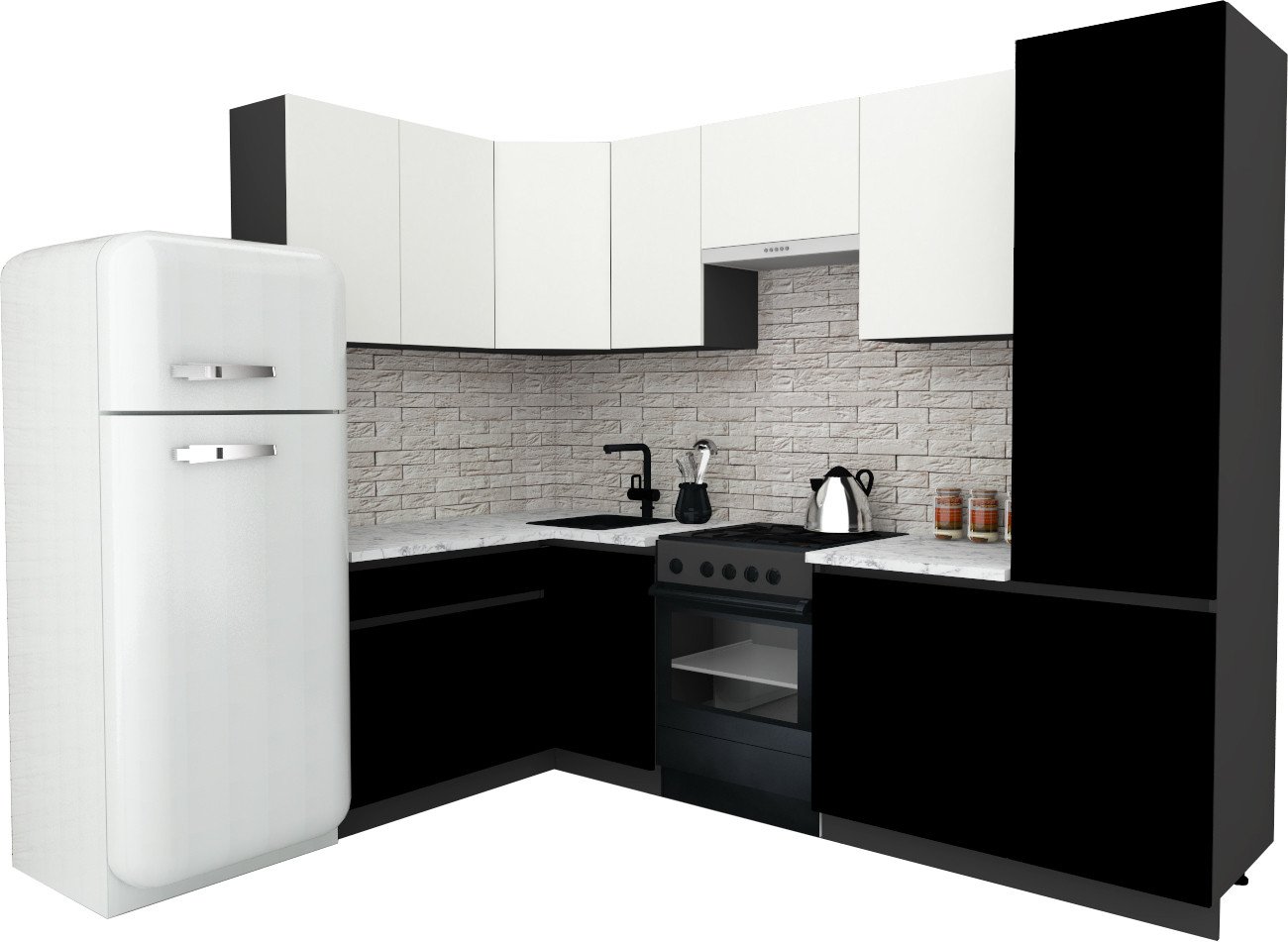 Готовая кухня ВерсоМебель Эко-7 1.4x2.6 левая (белый фасадный/черный/ст.мрамор итальянский)