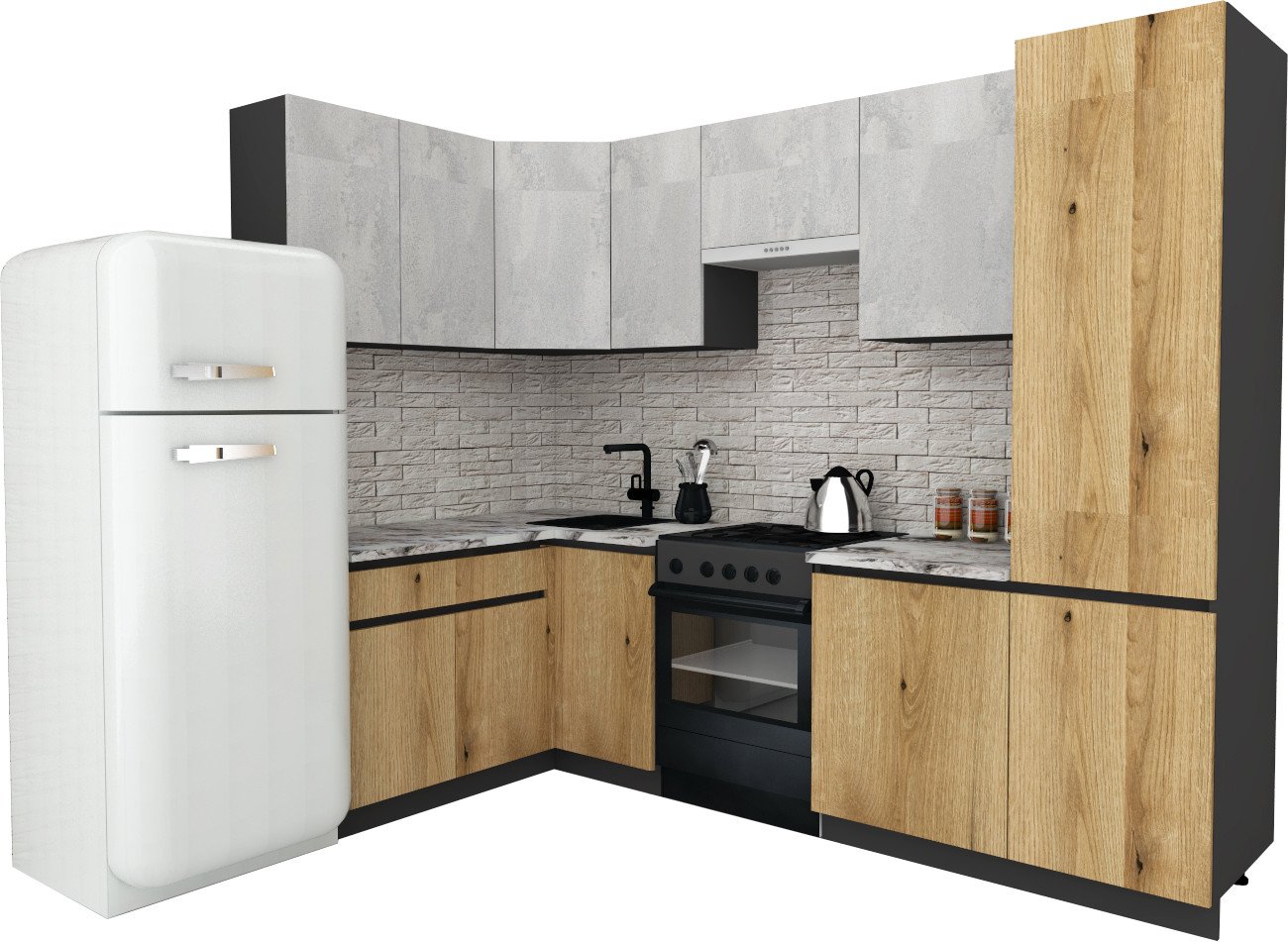 Готовая кухня ВерсоМебель Эко-7 1.4x2.6 левая (бетонный камень/дуб эвок прибрежный/ст.мрамор итальянский)