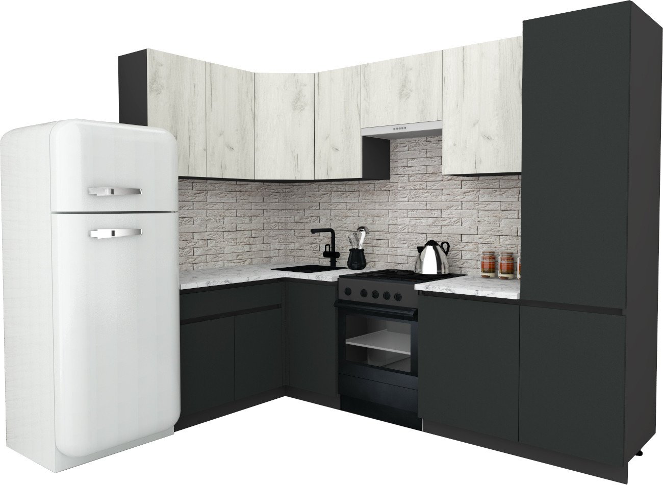 Готовая кухня ВерсоМебель Эко-7 1.4x2.6 левая (дуб крафт белый/антрацит/ст.мрамор итальянский)