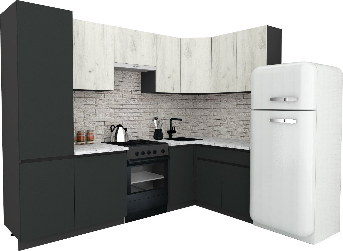 Готовая кухня ВерсоМебель Эко-7 1.4x2.6 правая (дуб крафт белый/антрацит/ст.мрамор итальянский)