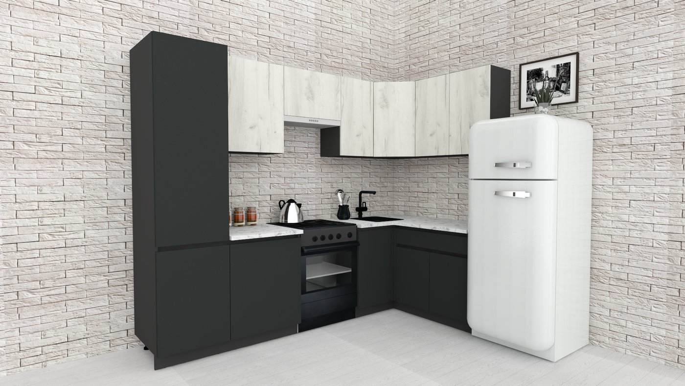 Готовая кухня ВерсоМебель Эко-7 1.4x2.6 правая (дуб крафт белый/антрацит/ст.мрамор ит.)