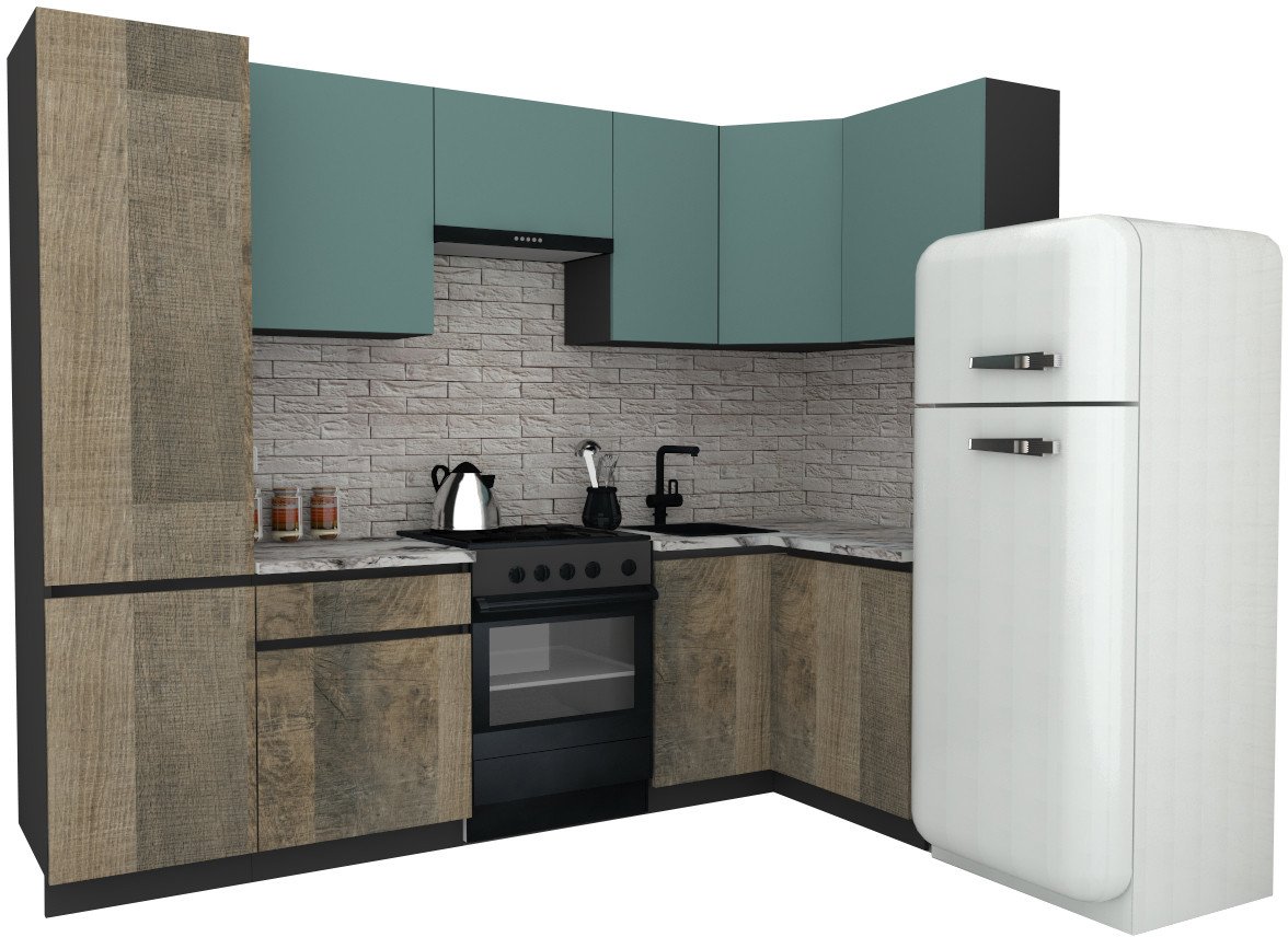 Готовая кухня ВерсоМебель Эко-8 1.2x2.7 правая (сумеречный голубой/дуб гранж песочный/ст.альберика)