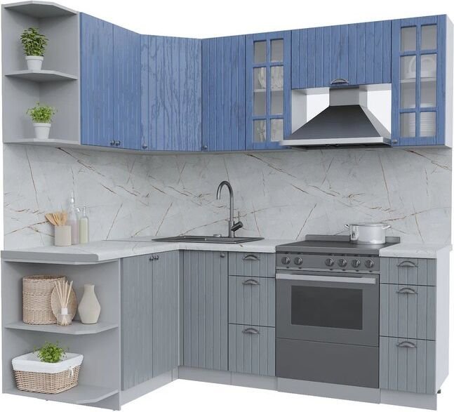 Готовая кухня Интерлиния Берес 1.5x2.1 левая (дуб лазурный/дуб серый/серый каспий)