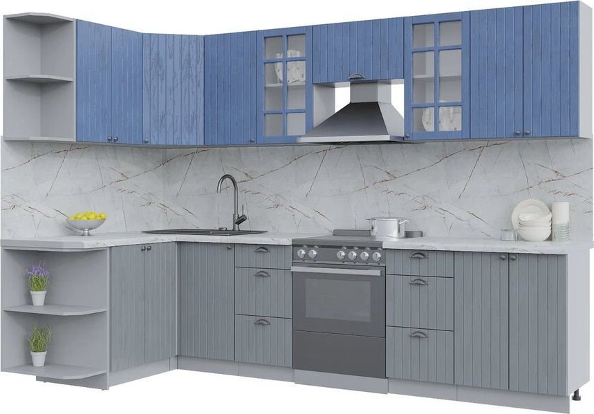 Готовая кухня Интерлиния Берес 1.5x3.0 левая (дуб лазурный/дуб серый/серый каспий)