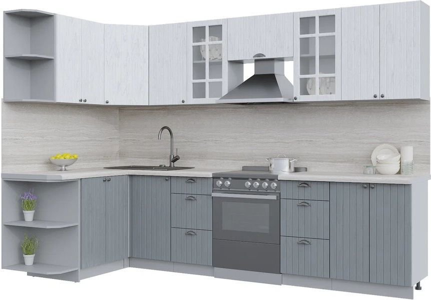 Готовая кухня Интерлиния Берес 1.5x3.0 левая (дуб полярный/дуб серый/травертин серый)