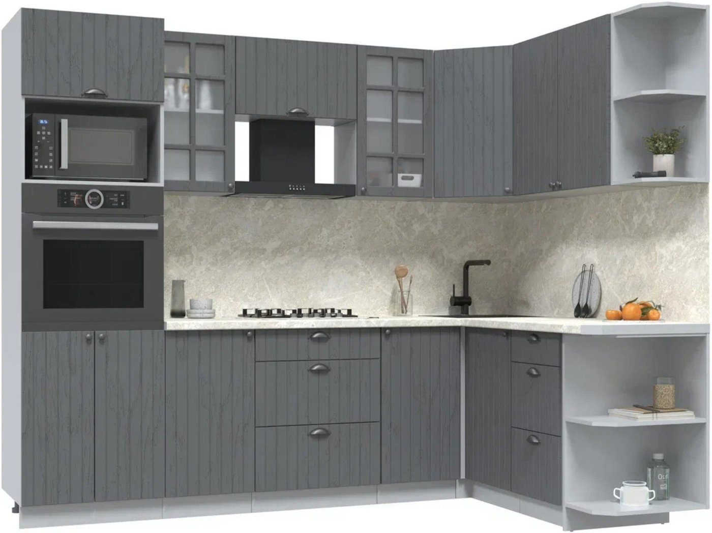 Готовая кухня Интерлиния Берес 1.68x2.6 ВТ правая (дуб серый/дуб серый/опал светлый)
