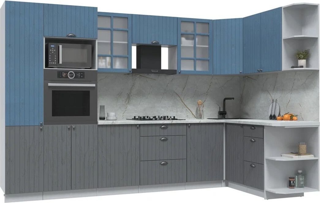 Готовая кухня Интерлиния Берес 1.68x3.2 ВТ правая (дуб лазурный/дуб серый/серый каспий)
