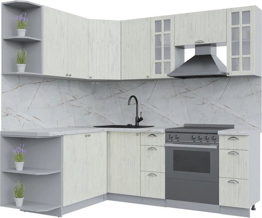 Готовая кухня Интерлиния Берес 1.7x2.2 левая (дуб снежный/серый каспий)