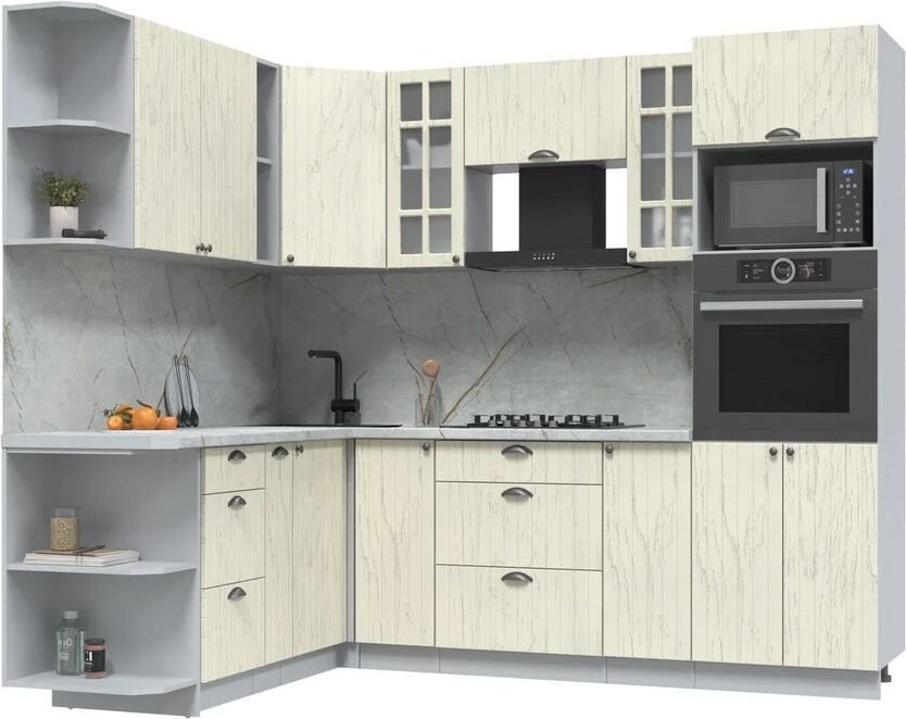 Готовая кухня Интерлиния Берес 1.88x2.4 ВТ левая (дуб снежный/серый каспий)
