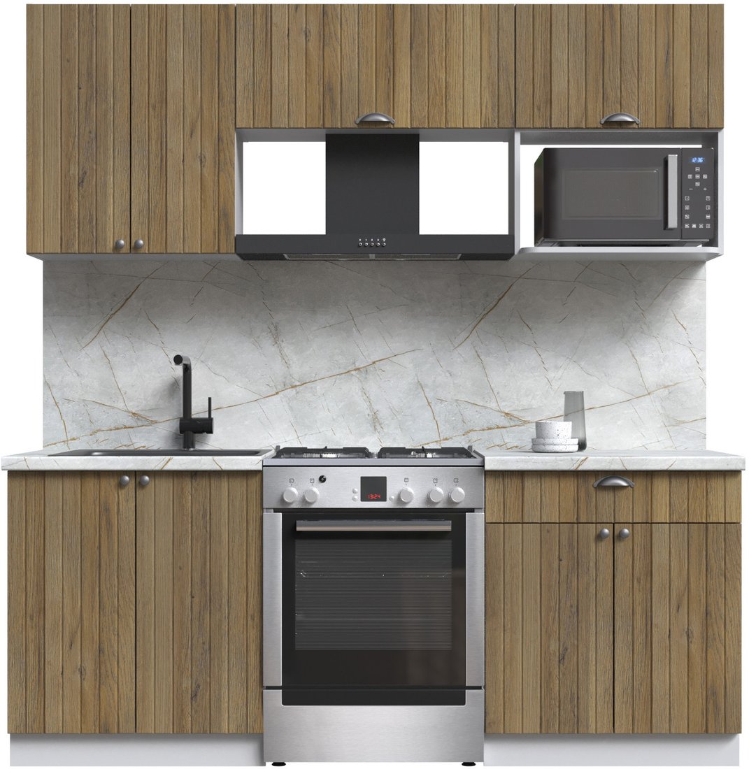 Готовая кухня Интерлиния Берес 2.0В (дуб вотан/дуб вотан/серый каспий)