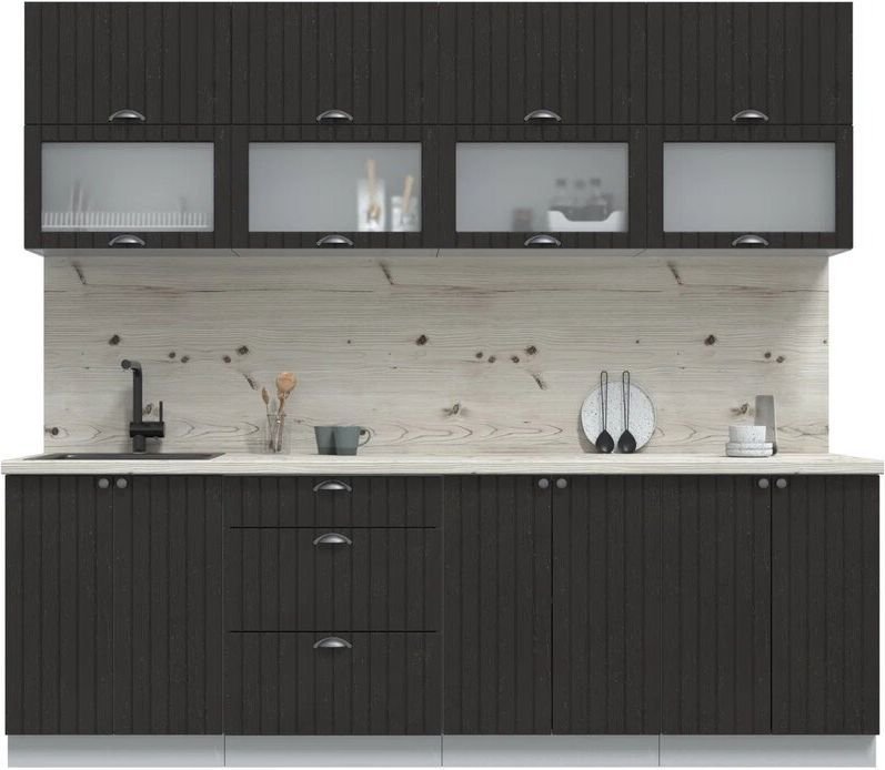 линейная, длина 240 см, ширина 60 см, каркас ЛДСП, фасад МДФ пленочный, установка мойки: врезная мойка, ширина шкафа под мойку 60 см