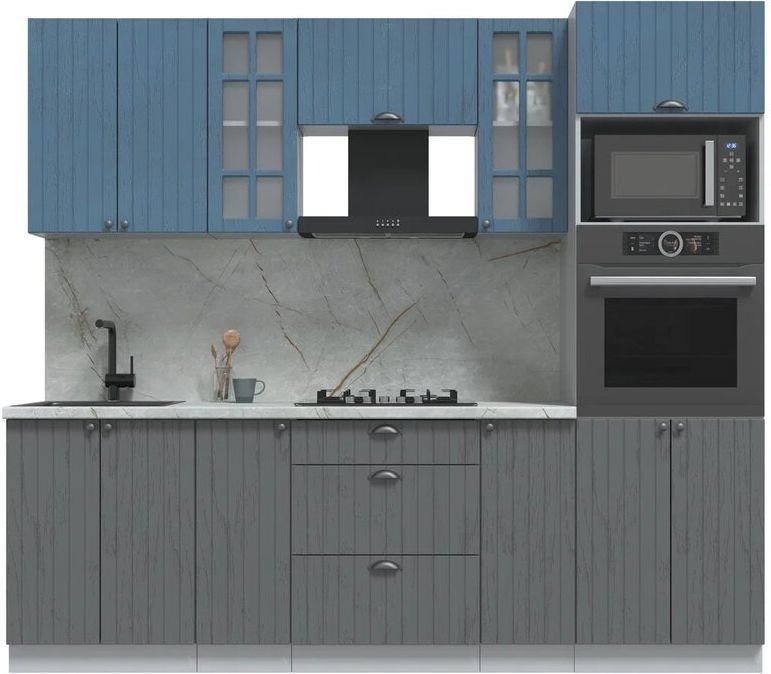 Готовая кухня Интерлиния Берес 2.4В (дуб лазурный/дуб серый/серый каспий)