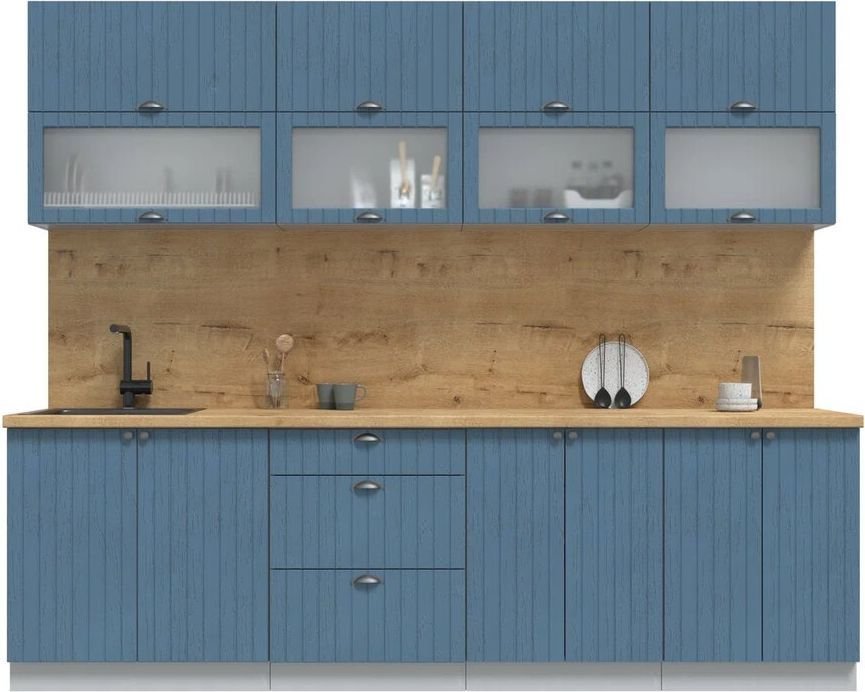 линейная, длина 260 см, ширина 60 см, каркас ЛДСП, фасад МДФ пленочный, установка мойки: врезная мойка, ширина шкафа под мойку 80 см
